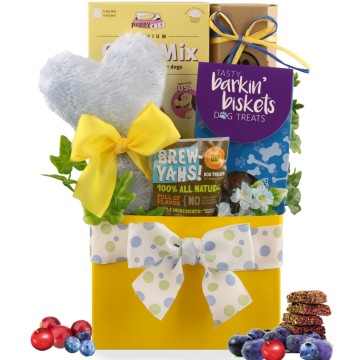 This modern themed dog gift is making tails wag across the nation. Dogs just love biscuits and with this doggy gift, we’ve included some very fine gourmet biscuits that Fido is sure to love. This doggie gift is certainly a universal gift and can be sent for your special occasion.
