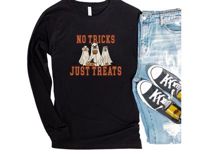 Halloween Tee | People Shirts | Human Dog Gear | Dog Lover | Long Sleeve | NO TRICKS JUST TREATS | Halloween Shirt